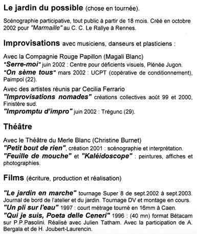 Benoît Sicat "plasticien/comédien/jardinier (un peu)" benoitsicat@wanadoo.fr