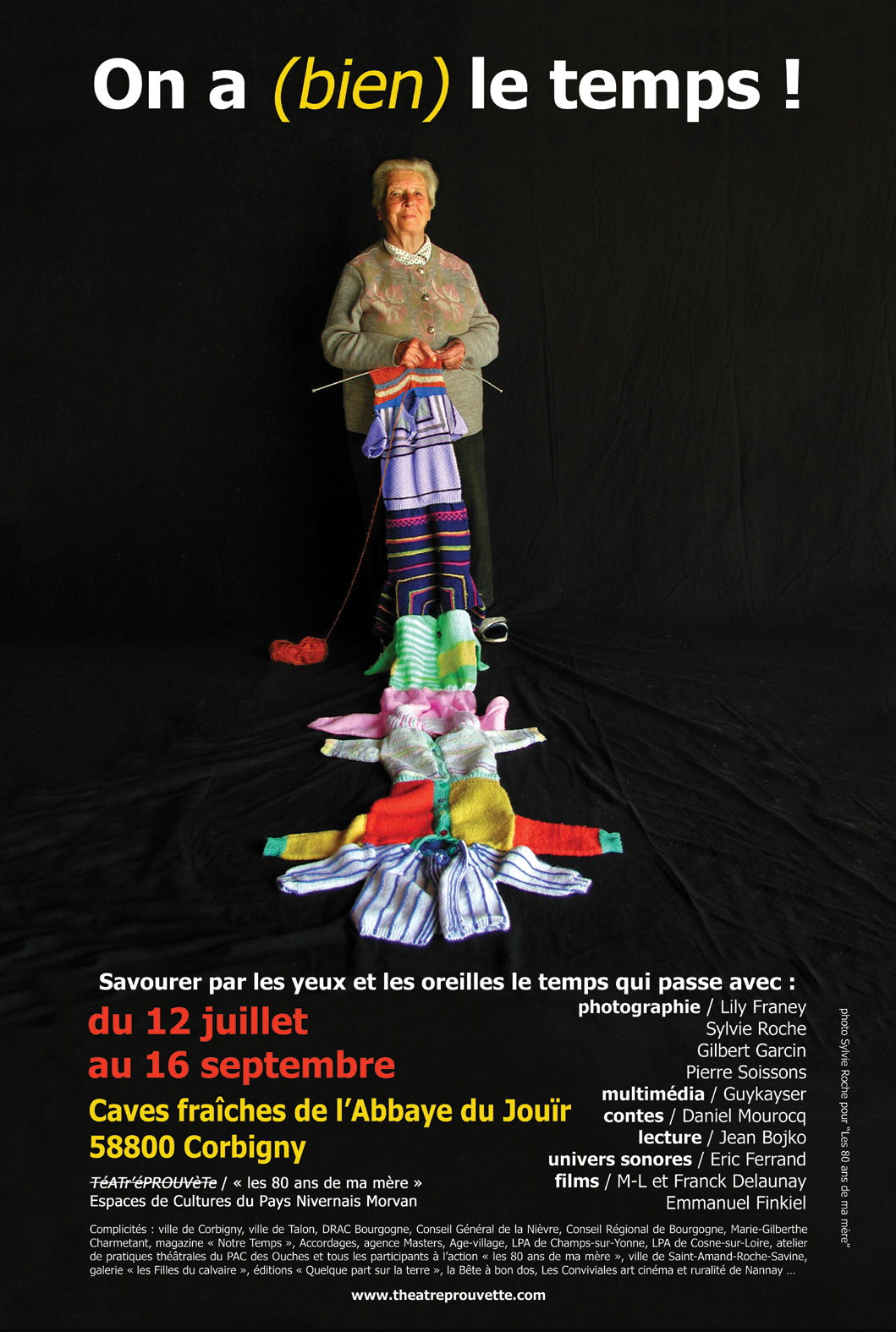 Pour réaffirmer que les personnes âgées nous sont précieuses et que nous sommes fier(e)s de les avoir, le TéATr'éPROUVèTe propose un évènement multiforme autour de l'image de l'âge du 12 juillet au 16 septembre 2007 dans les caves insolites de l'Abbaye du Jouïr à Corbigny dans la Nièvre.