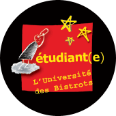 Badges plastifiés à épingle de diamètre 5 cm Un badge est crée à chaque séance de l'Université des bistrots, il est distribué gratuitement (même pour les riches). Ce sont des objets qui fonctionnent comme les traces d'une action qui a été menée sur le territoire et qui rassemblent symboliquement ceux qui ont participé. Vous pouvez toujours essayer de vous les procurer, il suffit de nous contacter. |
