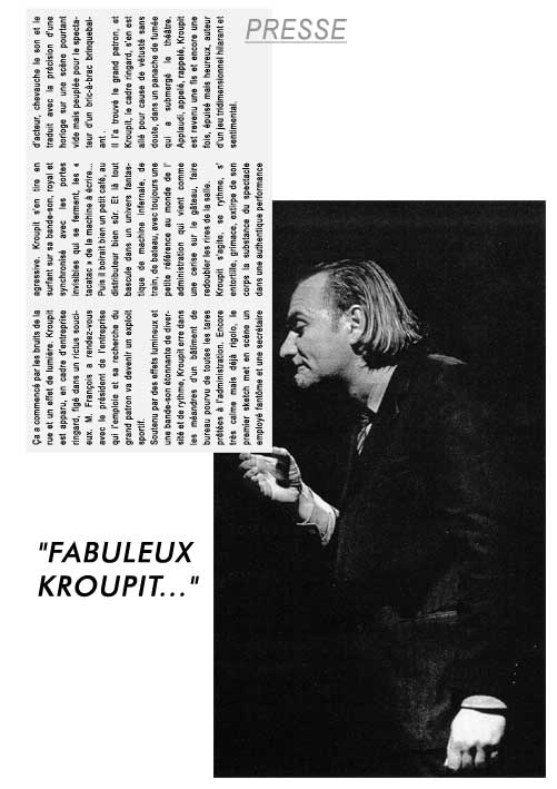 A peine quelques mots lâchés entre les dents et le rire nous prend, surprend... Mais qu'est-ce qui nous pousse à rire de ce Monsieur François? Sont-ce ses longues errances dans les couloirs qui résonnent à la recherche d'un hypothétique rendez-vous? Est-ce sa physionomie incroyable soumise aux lois de l'apesanteur? Ne serait-ce pas finalement un rire un peu nerveux un peu grinçant? Car ne sommes-nous pas aussi des M. François égarés dans un monde qui nous dépasse où la machine prend le dessus sur l'homme? N'avons nous pas nous aussi une sorte de suprême rendez-vous?